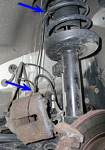 Im Folgenden wird die Reparatur am linken Vorderrad beschrieben, für rechts gilt entsprechendes: