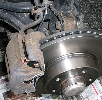 Wechsel der Bremsbeläge und Bremsscheiben der Vorderachse beim Opel Omega B